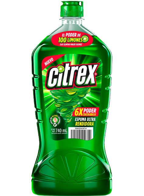 Nuevo Lavatrastes Citrex®, el poder de 100 limones®, elimina malos olores difíciles como huevo, atún y pescado, dejando tus trastes completamente limpios.